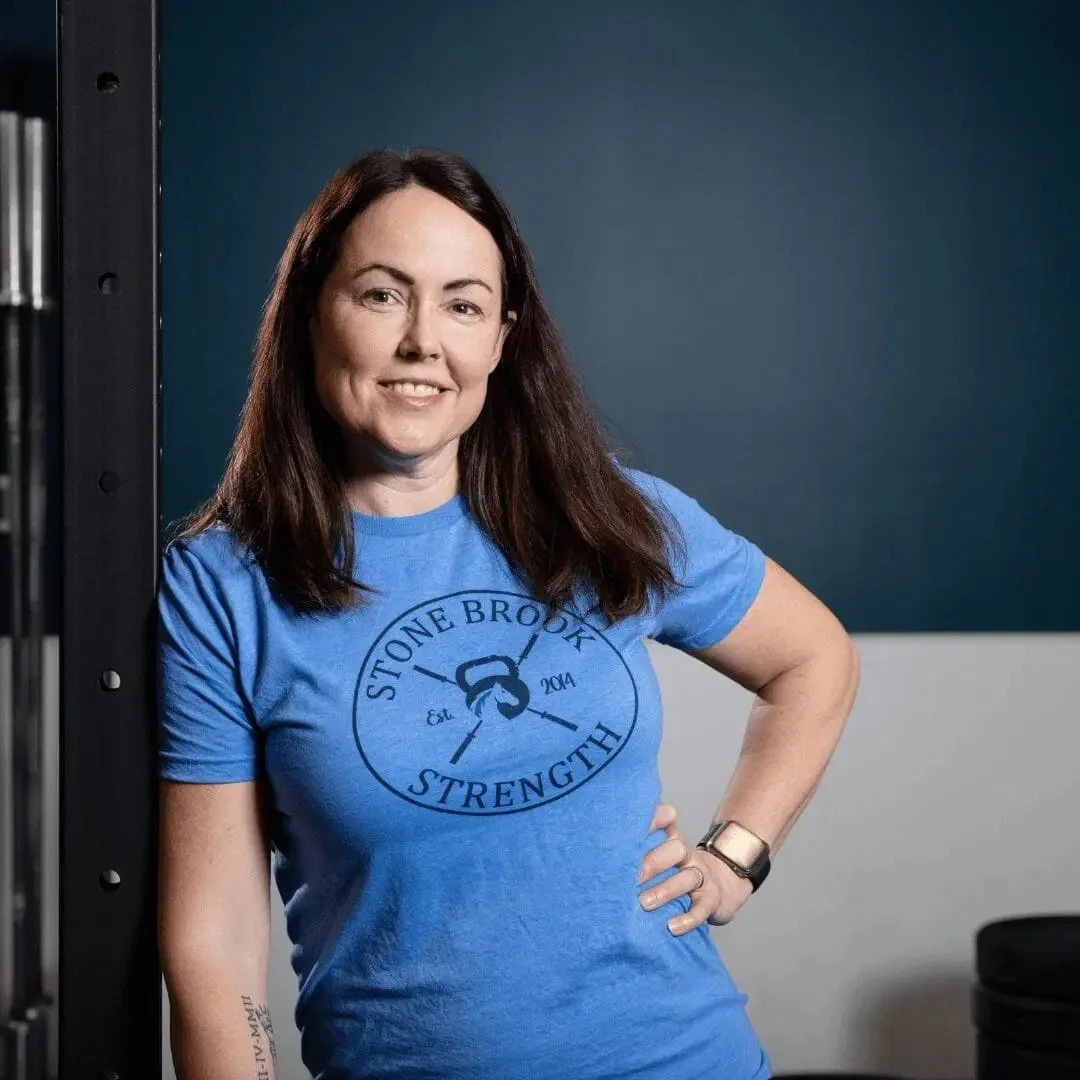 I first walked through the doors of Stone Brook Strength in 2018 looking for a new challenge, and a new form of self care in the form of improving my fitness, after what had been a difficult few years battling postpartum depression and helping out during lengthy hospitalizations of close family members. I have always enjoyed playing sports, and when college volleyball was a thing of the past, I took up running and enjoyed challenging myself to faster race times. High volume running led to overuse injuries, which left me without any active “me time” outside of the house (which had been key to both my mental and physical health). I knew that improving my strength could prevent the muscle imbalances that had caused my running injuries. I also knew attending classes a few days a week would fill me in a way that would enable me to better care for my family, and myself. After my Foundations classes, I joined in with group classes, and found so much more than I’d anticipated. Here were individuals from all walks of life, working to the best of their fitness and mobility levels, all having fun, cheering one another on, and celebrating personal achievements. This was a happy place unlike anything I’d belonged to before. As a trainer at Stone Brook Strength, I want everyone to feel welcome, valued, and confident in their ability to keep learning and improving in the gym as a means to enriching their lives outside of the gym.